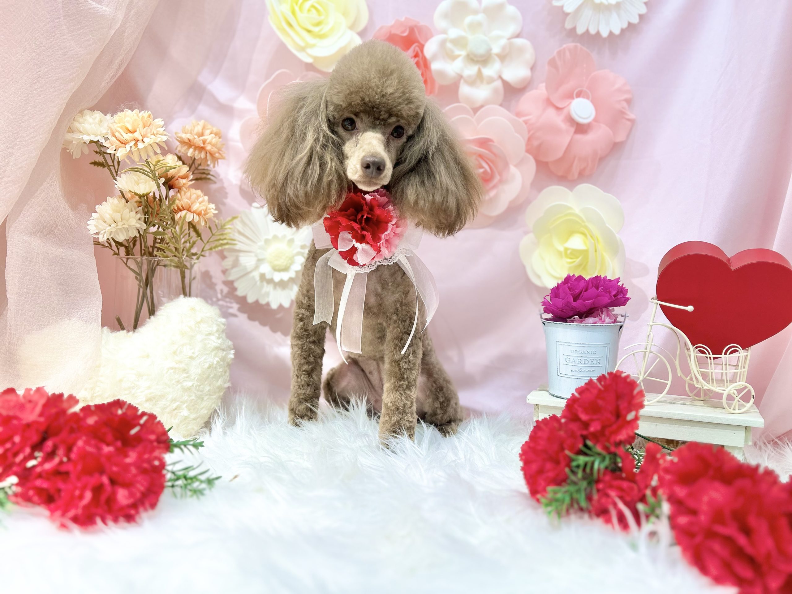 母の日というとカーネーションのイメージですが、違うお花やハートも置いて